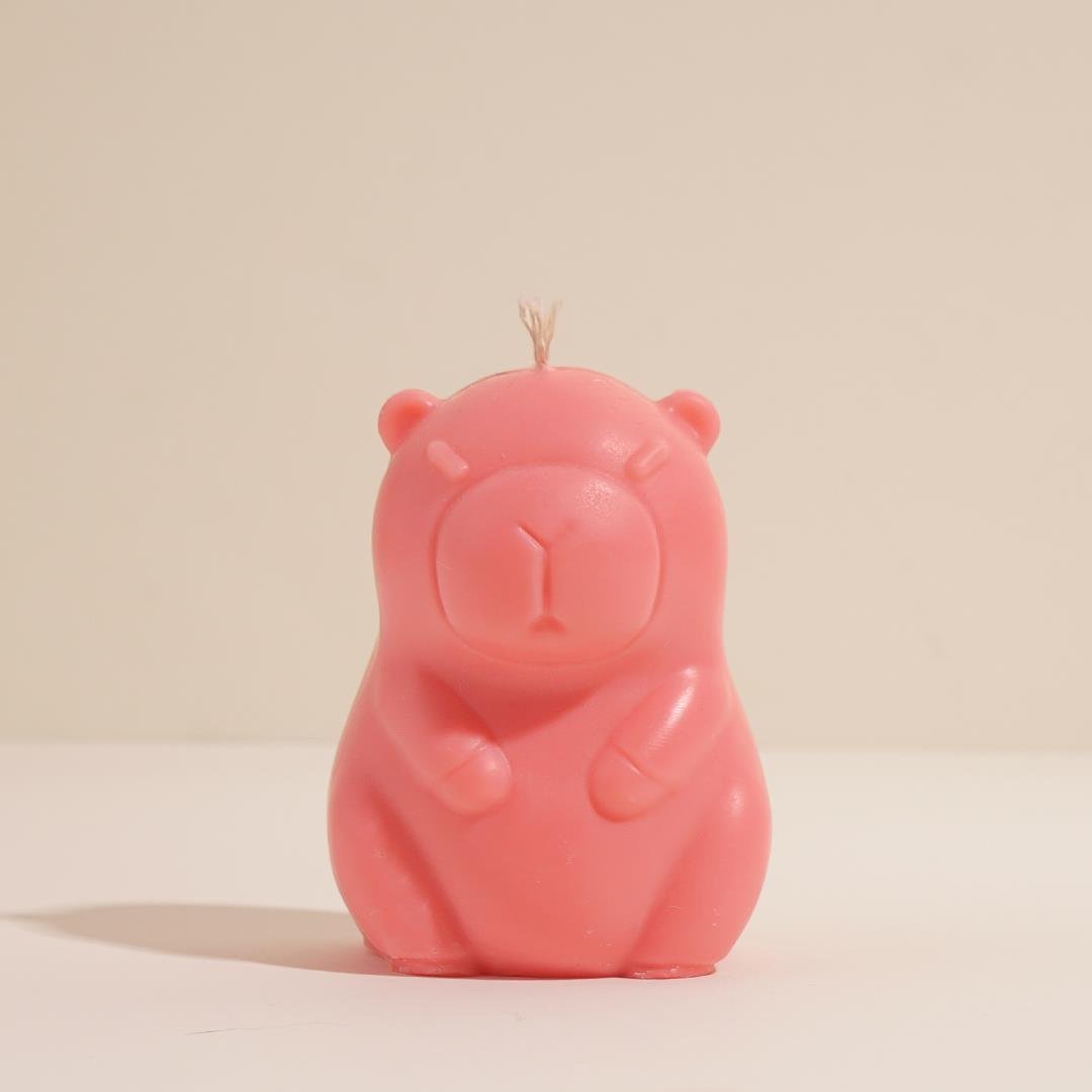 Kapibara Temalı Kırmızı Soya Mum, yalnızca işlevsel değil aynı zamanda dekoratif bir üründür. Raflarda, sehpada veya hediye olarak kullanıldığında bulunduğu ortama karakter katar.