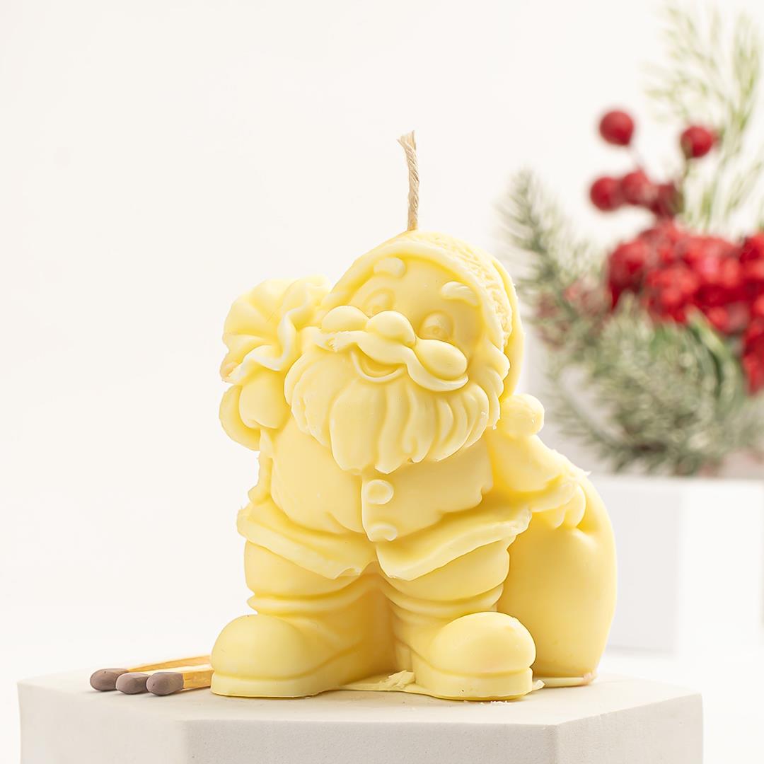 Noel Baba Temalı Sarı Soya Mum: Doğal ve Sıcacık Bir Yılbaşı Dokunuşu